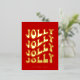 Jolly Jolly Jolly Jolly Christmas Postcard: a retro design, with a wavy vintage typography in gold foil and a classic red background.