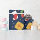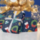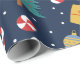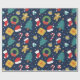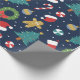 Wrap your presents with holiday cheer using our **Jolly Jumble Wrapping Paper**! Bursting with festive fun, this design features wreaths, presents, ornaments, gingerbread men, Christmas trees, stockings, Santa hats, and candy canes scattered across a rich dark blue background. Perfect for adding a playful and merry touch to your holiday gifting.