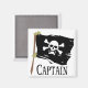 A Jolly Roger pirate flag and caption Captain available on Pirate T-shirts, Buttons, Magnets, Tote Bags, Aprons, Sweatshirts, US Postage, Note Cards, Mousepads, and more fun pirate gifts. Click on the Customize It link to personalize any item by adding a name or your own message.