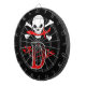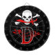 Avast,ye lubbers! Shiver me timbers! A monogram initial, with a dashing jolly roger with a cutlass in his teeth. Savvy?