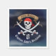 Customize the text for your event. Hand drawn jolly roger with two crossed swords. Hand drawn foggy sky background to match invitation.