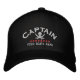 A fun sailing captains hat  with a pirate flag jolly roger skull easily change the colour of the thread to coordinate with your hat colour.