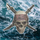 Modern, trendy pirate skull, get your coolest pirate school decals and stickers here.