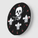 JOLLY ROGER SKULL AND THREE LILIES FLAG ,Amethyst Large Clock