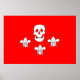 Red and white Jolly Roger's pirate banner with three fleur de lise..