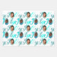 JOLLY Script Turquoise On White 4 Photo Christmas Wrapping Paper Sheet