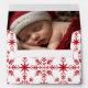 Make your holiday cards stand out from the rest with this adorable red & white snowflake envelope. Baby's first Christmas photo return label included - because nothing says jolly like a cute baby photo!