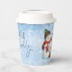 This cute Christmas paper cup design in blue features sparkling snowflakes as a backdrop for a fat jolly snowman and the handwritten script text 'Let's be Jolly'. Search ID841 to see other products with this design.