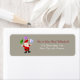 Le étiquette du Père Noël Jonglant présente un Père Noël joyeux, amusant à jongler habilement avec les cadeaux de Noël, le tout contre un arrière - plan brun pointillé. © Matin 6