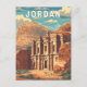 Jordan retro vector travel design. From the iconic rose-red city of Petra and the vast Wadi Rum Desert to the Dead Sea and historic ruins of Jerash, Jordan offers a journey through history, adventure, and natural beauty.
