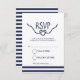 Carte RSVP avec une police de calligraphie charmante en bleu marine sur un arrière - plan blanc.