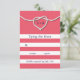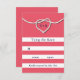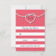 Une corde blanche attachée dans un coeur décore ce RSVP sur un arrière - plan corallien, le rendant parfait pour le mariage nautique ou de plage. Faites défiler vers le bas pour voir le reste de la collection de mariages, et si des articles supplémentaires sont nécessaires, contactez-nous à prettyfancyinvites@gmail.com avec votre demande