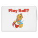 Un chien mignon joue avec une balle et un texte rouge dit "Jouer à la balle ?" sur des T-shirts pour chiens, des costumes, des tasses, des cartes, des autocollants, des sacs fourre-tout pour chiots, et bien plus encore.
