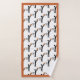 Lecteur de basket-ball avec ensemble de serviettes de bain sur mesure. Il présente l'icône minimaliste d'une silhouette noire d'un joueur de basket essayant de mettre la balle dans le panier sur un arrière - plan blanc et une bordure orange-brun. La serviette de toilette présente un motif rayé en rayures noir, blanc et orange-brun et le linge est de couleur orange-brun et votre monogramme dans un cadre. Certains éléments sont offerts par vectorportal.com.