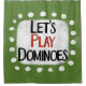 "Let's Play Dominoes" est un design de texte mignon avec une forme d'accent blanc entourée de points blancs texturés.