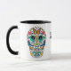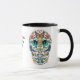 Profitez de votre café avec ce design coloré qui célèbre Dia De Los Muertos (Jour des Morts) avec des animaux spirituels tels que les aigles, renards, lions de montagne, lézards, loups, colibris, grenouilles, chevaux sauvages, papillons et fleurs du désert du sud-ouest stylisés comme un crâne à sucre.