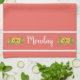 Tournesols sur la serviette de cuisine de lundi sur l'arrière - plan de corail.
