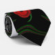 Cravate avec la fleur rouge de pavot sur l'arrière - plan foncé des rayures onduleuses rouges/vert.