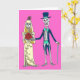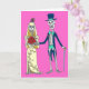 Jour du mariage de la carte de voeux morte avec des jeunes mariés sur l'arrière - plan rose