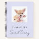 Un arrière - plan violet lavande girly. Personnalisez et ajoutez votre propre photo de votre chien ou animal de compagnie. Ajoutez votre nom et un titre. Le titre est écrit avec un script de style moderne écrit à la main. Lettres de couleur noire. Un carnet pour dessiner votre chien, prendre des notes, un journal ou pour les devoirs scolaires.
