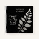 Un journal personnalisé inspirant pour suivre les plans ou les notes. Avec de beaux feuilles botaniques argentés qui sortent d'un arrière - plan noir et une citation de la Bible chrétienne de Proverbes 3:5 "Confiance dans le Seigneur", ce journal est un rappel encourageant pour la femme chrétienne. Personnalisez-le avec votre nom.