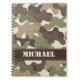 Cette couverture de carnet de camouflage peut être personnalisée avec votre nom là-dessus. Ce carnet de notes à spirale de camo fait sur commande dans des tonalités kaki, brunes, crèmes et vertes peut être utilisé comme journal ou journal intime aussi. Il fait un grand cadeau pour un chasseur avide, un pêcheur ou une personne militaire. Il est également grand pour des approvisionnements de siège social en de nouveau à utilisation d'école. © Chrissy H. Studios, LLC d'illustration. Tous droits réservés.