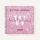 Journal avec arrière - plan de parties scintillant rose, nom, titre, date et grande initiale.