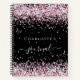 Arrière - plan noir. Faux parties scintillant rose pâle. Le titre : journal écrit avec un script de style à la main girly moderne avec des swashes. Lettres de couleur blanche. Un carnet pour les dessins, esquisses, notes et devoirs scolaires.