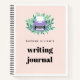 Écriture d'un journal avec une couverture blush pâle avec l'illustration d'une machine à écrire violette assise dans la verdure. Ajoutez votre nom!