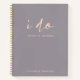 Un journal mariage élégant avec la typographie manuscrite "I do" jumelé avec le titre de la typographie moderne et les noms de mariée et de mariée en rose pâle sur un arrière - plan gris lilas doux.