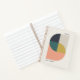 Un carnet minimaliste moderne de revue d'art abstrait avec un design géométrique élégant dans des couleurs muettes de corail rose, moutarde jaune, turquoise vert, bleu marine et naturel doux gris taupe. L'accessoire parfait pour un bureau à domicile contemporain minimal.