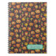 Un carnet photo en spirale personnalisable sur le thème de la chute - Design No. 2 : Vous pouvez personnaliser la couverture de ce carnet en y ajoutant le nom de quelqu'un. Un design citrouille et cactus inspiré d'un arrière - plan bleu foncé. Avec des toiles d'araignée et des vignes ajoutant une touche finale au design.