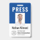 Journalist Press Pass Photo Name Logo ID Navy Blue Badge