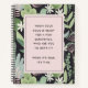 Journalling Prompts for Self-Discovery Shades of Green Abstract Botanical Notebook... On a chic charcoal black background, an arrangement of abstract botanical leaves and flowers creates a lush backdrop for a heartfelt saying that reminds you to reflect on your life, including any limiting beliefs or inner blocks that may be holding you back from living your dreams and enjoying new experiences and adventures that your soul craves. We've all been there... and journalling is a personal, private way to explore the possibilities you've been shying away from. The back of the notebook displays 10 writing prompts to jumpstart your self-discovery journalling adventure. Motivational saying is by Barbara Casey.