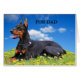This Father's Day greeting card shows a doberman pinscher dog on the front with the texte "Joyeux anniversaire" on the inside