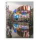 Photographie de Piccadilly Circus à Londres par temps de pluie, avec les fameuses lumières réfléchissant sur le trottoir imprimé sur la couverture d'un carnet.