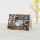 Les jours d'automne des épouvantails, des citrouilles et des feuilles en chute carte de voeux.