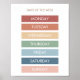 Améliorez l'apprentissage de votre enfant à la maison ou en classe grâce à ce tableau de jours amusant et coloré. Ces affiches colorées feront de l'apprentissage précoce une aventure agréable à la fois dans la salle de classe, pendant le temps de jeu ou pendant l'école à la maison.