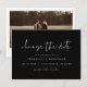 Ce changement de date comporte une police manuscrite pointue et un design minimaliste moderne avec une combinaison de couleurs noir et blanc foncé. *La plupart* des mots est modifiable et toutes les couleurs peuvent être ajustées à votre goût. Ajoutez une photo à l'arrière et listez votre site mariage pour une touche spéciale.