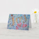 The golden yellow word "Joy" sparkles outlined in silver glitter. Below "Joy" are three pink hearts with a purple outline. The background contains soft blue, green, and lavendar tones. The painting was rendered in watercolor. Glass glitter was sprinkled on top to add to the happy feeling of joy from the inspirational word painting. The watercolor painting has a textural contrast and sparkle from a light layer of glitter. These images are designed so as to provide reflection and meditation on a single word. The idea is to think about the painting and it will help you have a positive attitude associated with that word which will be emotionally healing to a person. You can also combine them together to make your own word series for meditation/ contemplation. Personalize this card with your own text and images using the "Customize" button.