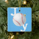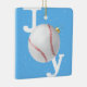 Joy bauble baseball sky blue Christmas Holiday Ceramic Ornament