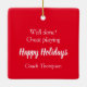 Joy baseball in the o white, starry sky blue and red on reverse holiday coach or team gift add your own message ornament. Personalize with your own personalized message on the back. Designed by Sarah Trett for www.mylittleeden.com