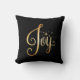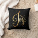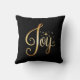 “Joy” Black Gold Script Elegant Holiday Seasonal Throw Pillow