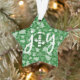 Features our JOY Chiropractic Christmas ornament design on a festive green background.