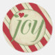 Add the perfect finishing touch to your Christmas wedding favours, holiday cards, or festive packaging with these charming rustic Christmas wedding stickers! Featuring the word "Joy" in elegant green modern calligraphy script, these stickers are set against a vintage-style background and encircled by rustic red and green stripes, evoking a classic candy cane look. Designed to coordinate beautifully with the Married and Merry holiday card collection, they are perfect for sealing envelopes, decorating gift tags, or adding a festive touch to your Christmas stationery. Whether you're planning a rustic Christmas wedding or simply want to elevate your holiday correspondence, these cute and versatile stickers bring vintage charm and holiday cheer to any occasion.