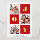 JOY Elegant Gold Snowflakes Modern Script on festive Red colour 3 Photo Collage Real Foil Holiday Card. Send Holiday Greetings to your loved ones with this festive and Modern Holiday Card. All the texts are pre-arranged for you to personalize easily and quickly with your own details. Happy Holidays!