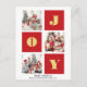 JOY Elegant Gold Snowflakes Modern Script 3 Photo Collage on Red and Green Festive Postcard. Send Holiday Greetings to your loved ones with this minimalist and modern Christmas Holiday Postcard. All the texts are pre-arranged for you to personalize easily and quickly with your own details. Happy Holidays!