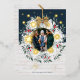 Send some love and holiday cheer to your family and friends with our magical and festive rose gold foil Christmas card. Beautiful watercolor sage green eucalyptus and festive winter greenery hanging wreath with a special family memory photo displayed in the middle of the Christmas wreath. The photo is framed in rose gold foil with festive red cranberry accents. White & rose gold snowflakes are placed within the Christmas wreath arrangement. Simple falling snowflakes cascade from above, creating a cozy and magical winter scenery. "Joy Elevated" is displayed in elegant foil calligraphy. The background features a two-tone card white shiplap wood texture. Customize with your family signature and year. Reverse side with white shiplap wood texture and a faux gold bow and ribbon corner accent. Wreath illustration hand-drawn original artwork by Moodthology Papery.