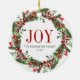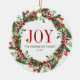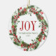 Joy Family Name Christmas Wreath Ceramic Ornament