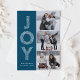 JOY Foliage Lettering Blue Photo Collage Holiday Card